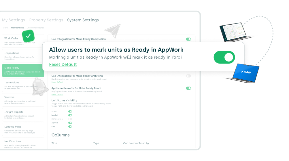 You can now mark a unit as Ready in AppWork and we’ll automatically update the unit’s status to Ready in Yardi.