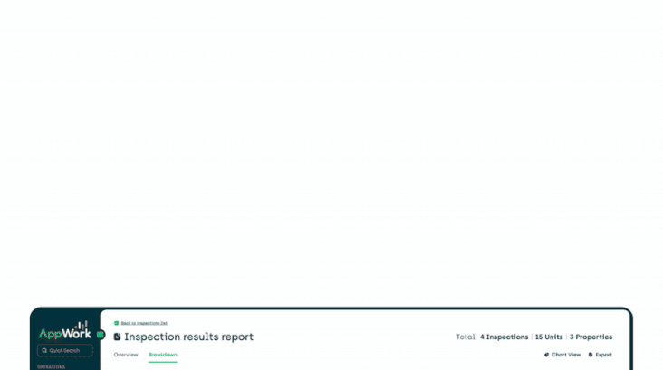 You can now drill into the Inspection Results report to see a breakdown of the units that require action. You can also create or view the status of the work orders associated with the issues.